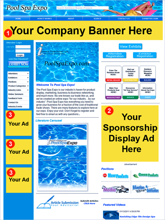 iTS-PoolSpa Expo is the epicenter for companies connected to the packaging industry. Our 24-hour, 7 days a week Expo facilitates a large, consistent flow of web traffic. This targeted web traffic can generate a wealth of opportunity for sponsers and advertisers. This means, your banner ads will be seen by a number of companies who are specific to your industry. Targeted ads are much more effective than a typical generic approach. Obtaining an ad on our site has an unlimited opportunity. |